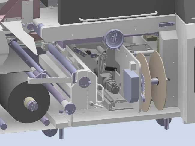 Vi konstruerer enheden nøjagtigt efter dine behov, så hvis der f.eks. ikke er plads under indføringsbåndet, foreslår vi en løsning med afrullerbord. Den afruller filmen, sætter etiketter på, printer på etiketterne og afleverer filmen til pakkemaskinen.